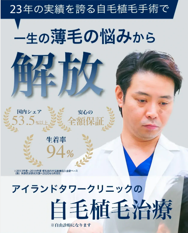 新宿アイランドタワークリニックは、自毛植毛専門のクリニック。