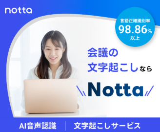 公式サイトはこちら Nottaをはじめる notta 自動的に音声を文字起こし お悩みをNottaで解決 文Nottaで、大幅な工数削減が実現 個人もチームもあらゆる業種・業務で活用 Nottaの魅力 ・98.86%の文字起こし精度を達成 ・58種類の言語に対応 ・画面収録 ・テキスト翻訳機能 ・スケジュール機能 ・さまざまなファイル形式に対応 ・複数のデバイスで自動同期 ・チームワークスペースの作成 ・ユーザーのプライバシーとセキュリティを保護 商品名 Notta-A8-20250710 カテゴリ 仕事情報
