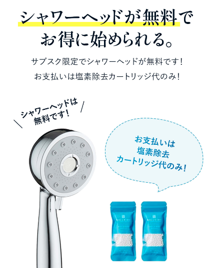 シャワーヘッドの本体代金は無料で、塩素除去カートリッジが120日サイクルで送られてくる形となります。
